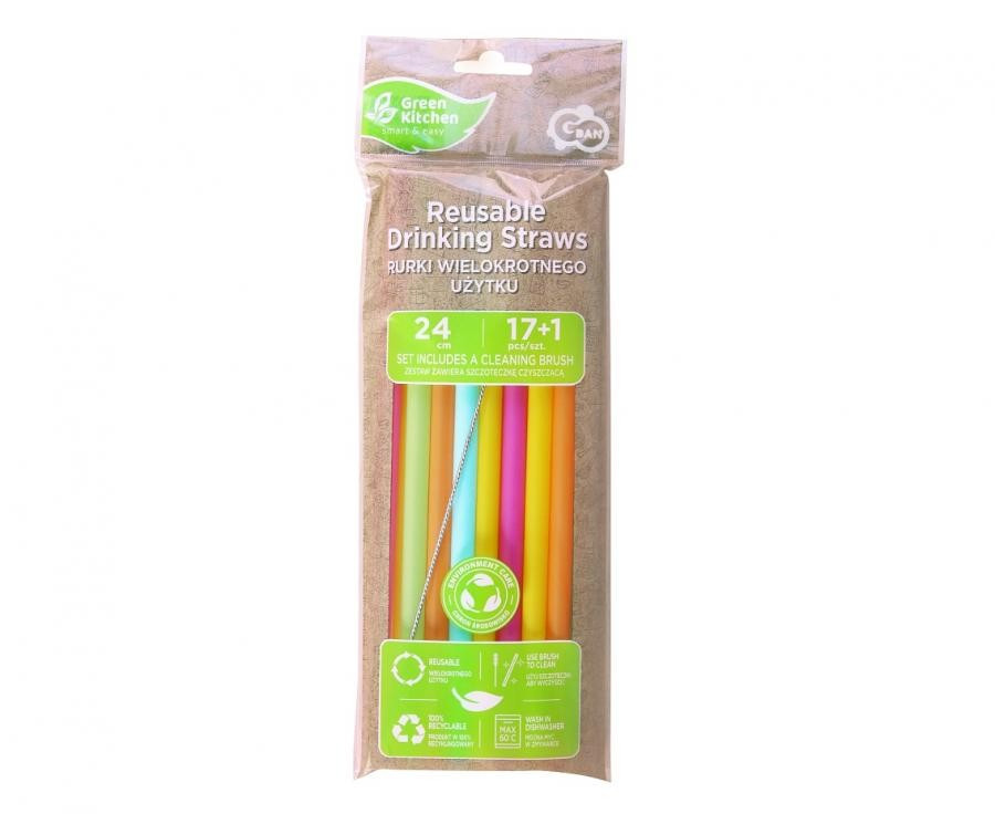 Színes Colors műanyag újrafelhasználható szívószál 17 db-os + kefe