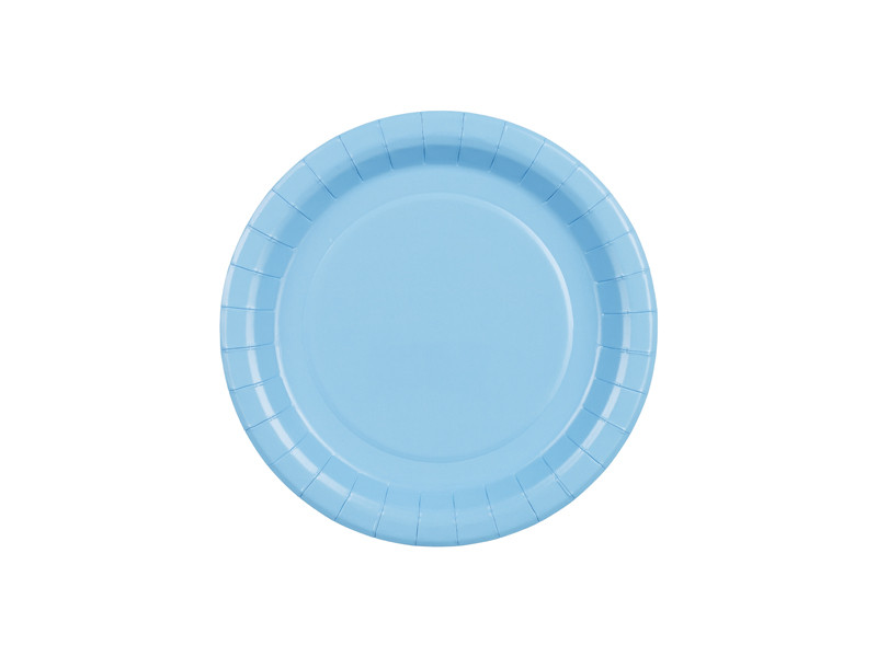 Világoskék, kerek papírtányérok 18 cm átmérővel, 6 darabos csomagban. Ideális megoldás piknikekhez, születésnapi bulikhoz és egyéb könnyed eseményekhez.